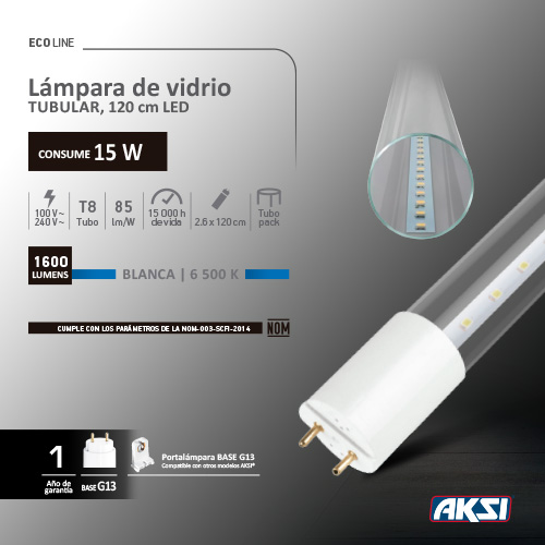 115284: Consume 15 W, 1200 Lumens, Dimensión 2.6x120cm